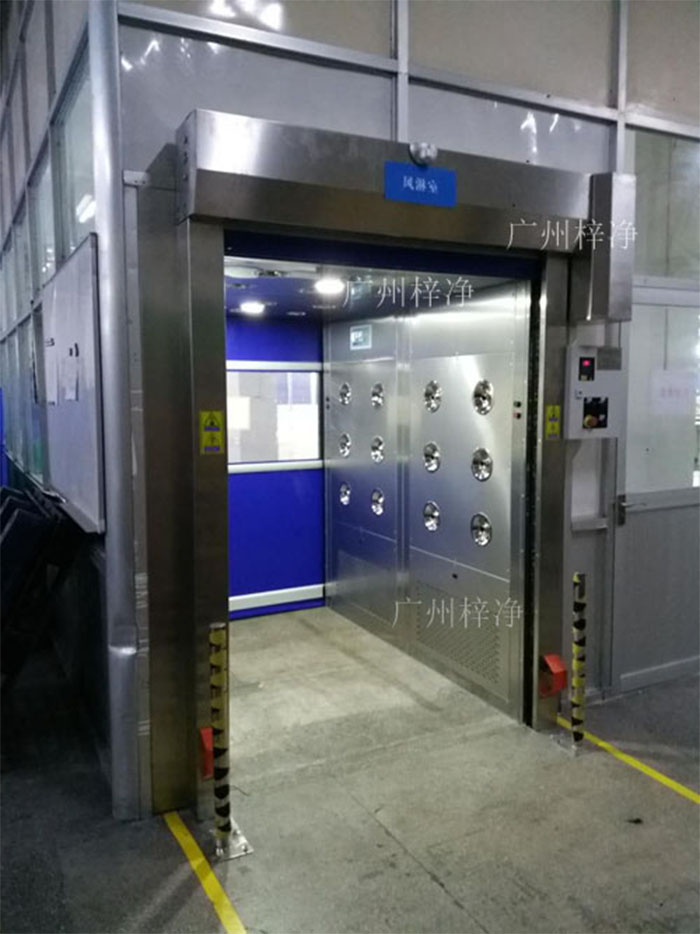 快速卷帘门风淋室是人员进入洁净室所必需的通道,为了减少人员进出洁净室所带来的大量灰尘,在洁净室的入口处安装功能齐全的“气闸室”可以减少空气污染,当人员通过风淋室时,污染的尘埃粒子经过高效过滤器的高度洁净气流射掉。